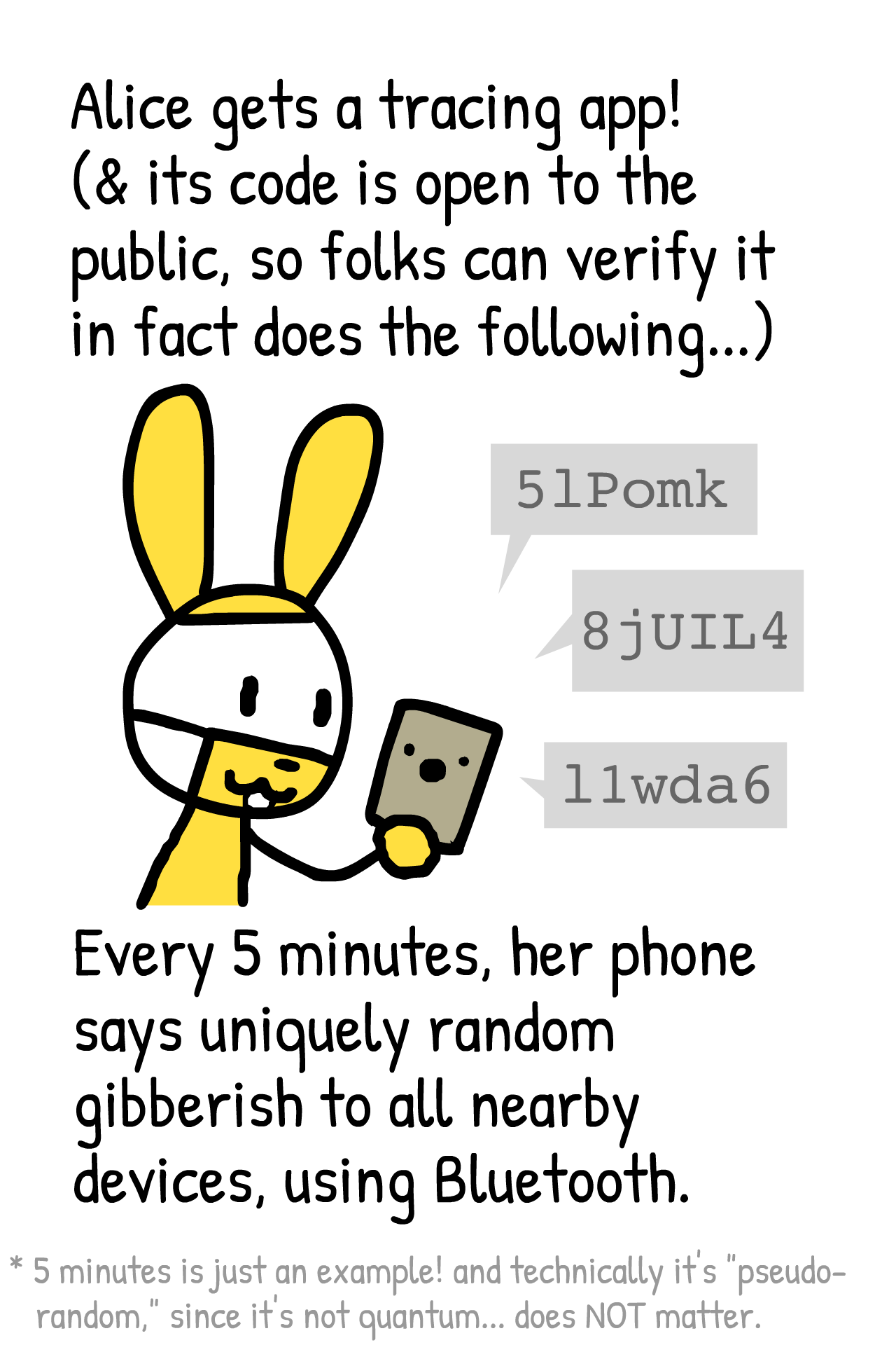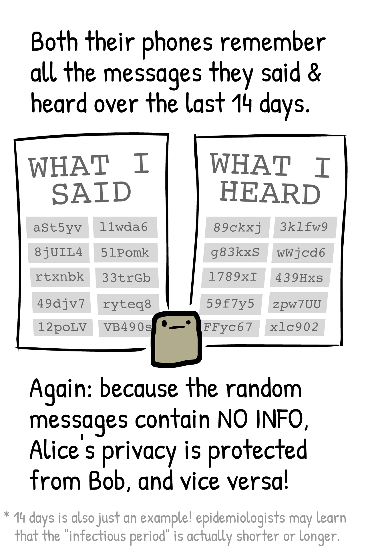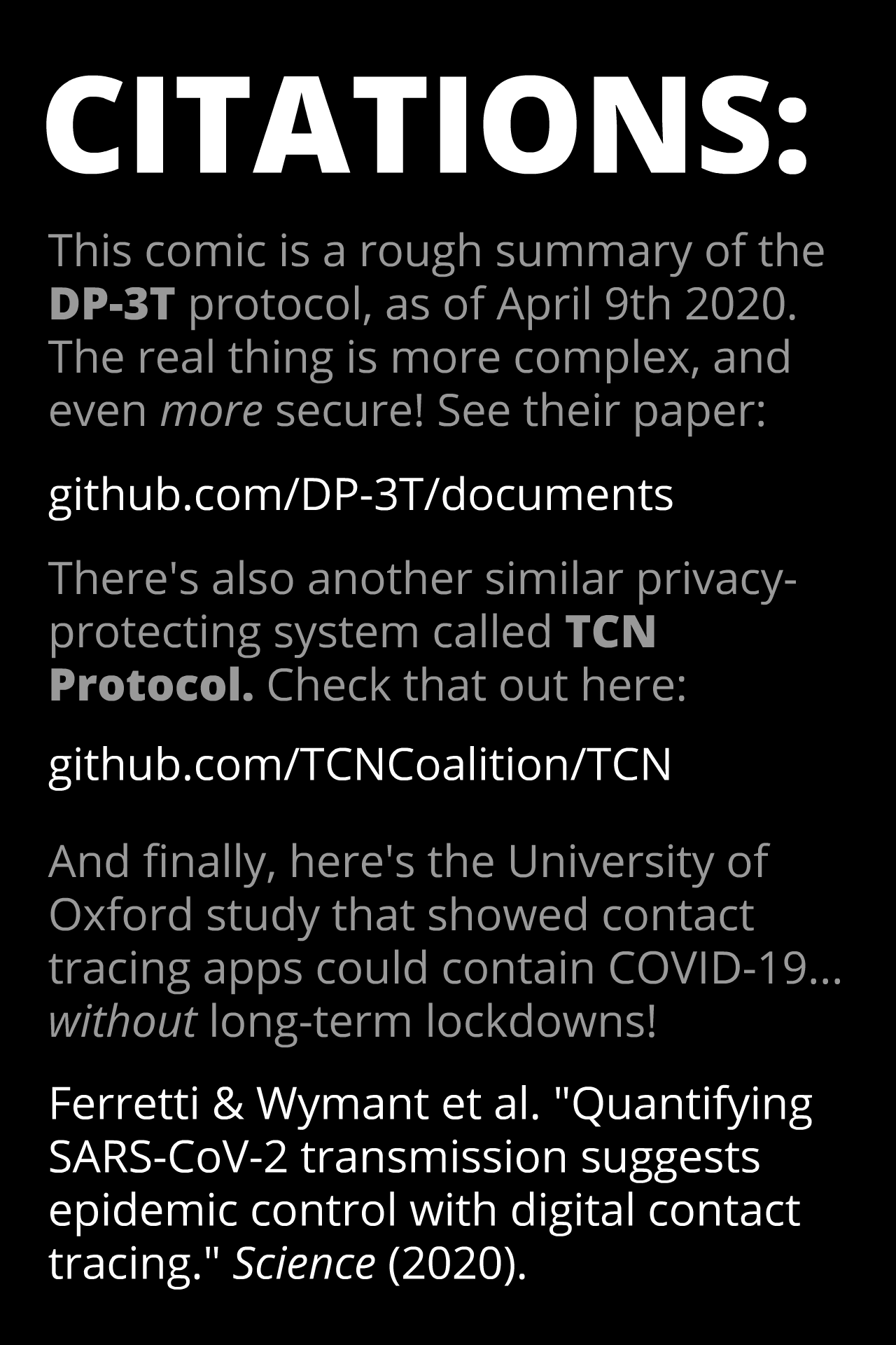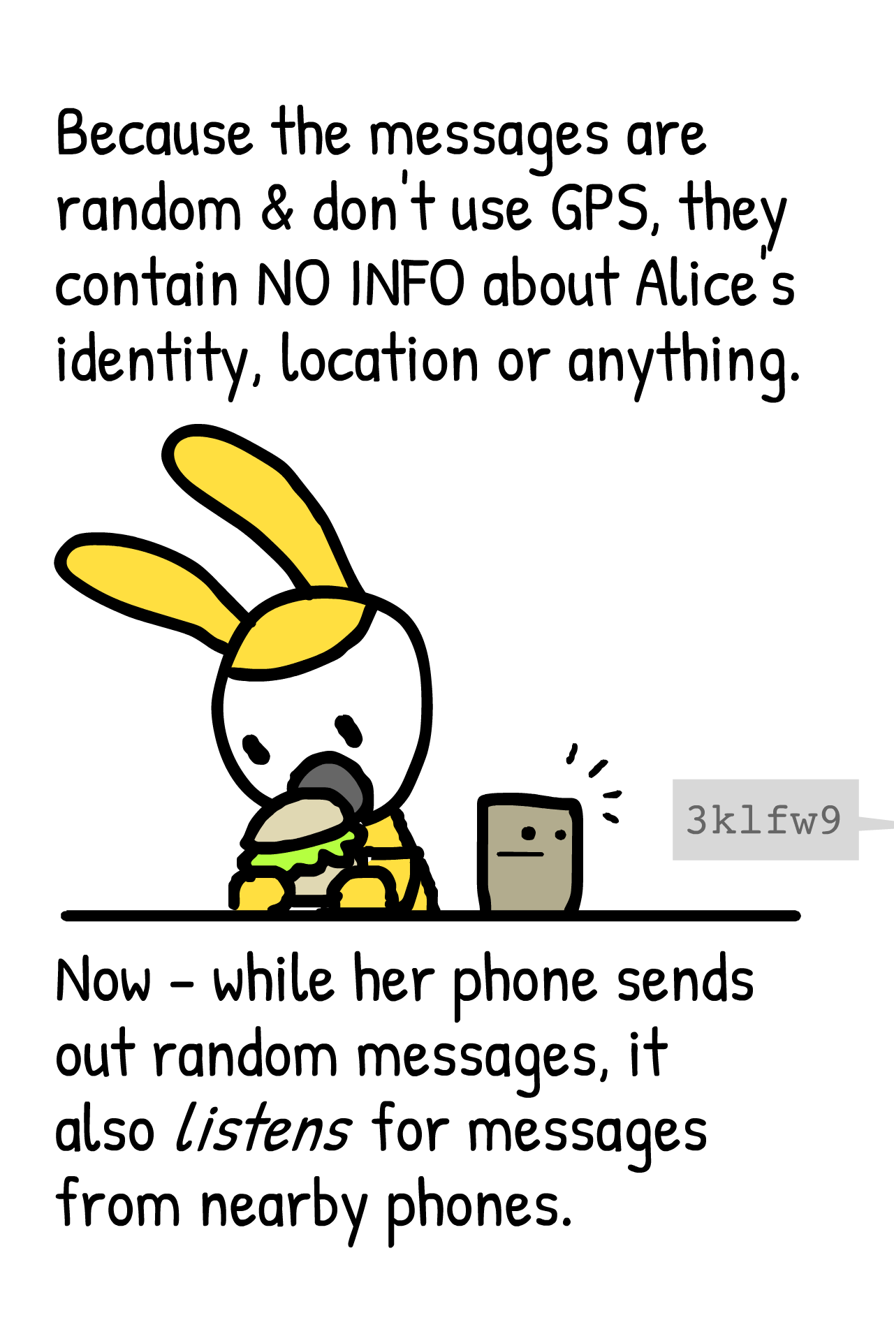 Tegneserien beskriver en konkret idé til en smitteopsporingsapp, men principperne bruges af flere og er i øvrigt ret velkendte fra feltet med kryptering, deling af hemmeligheder, at regne på/med information, man ikke kan se… hvor både matematik og datalogi er helt nødvendige. Det ser ud til, at man her bruger en lidt anden teknik end den, vi tit hører om med primtal og andet i den talteoretiske/algebraiske boldgade.