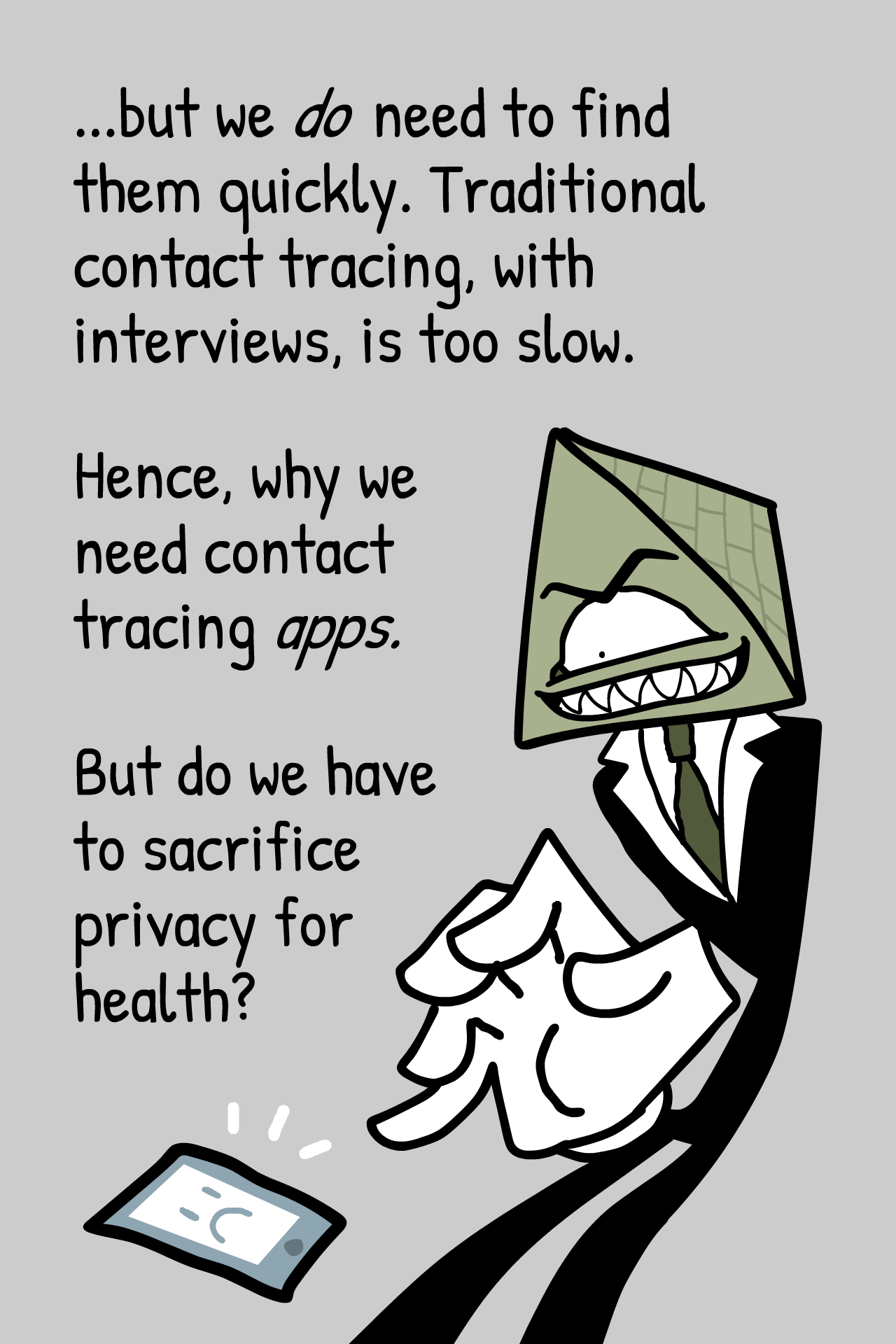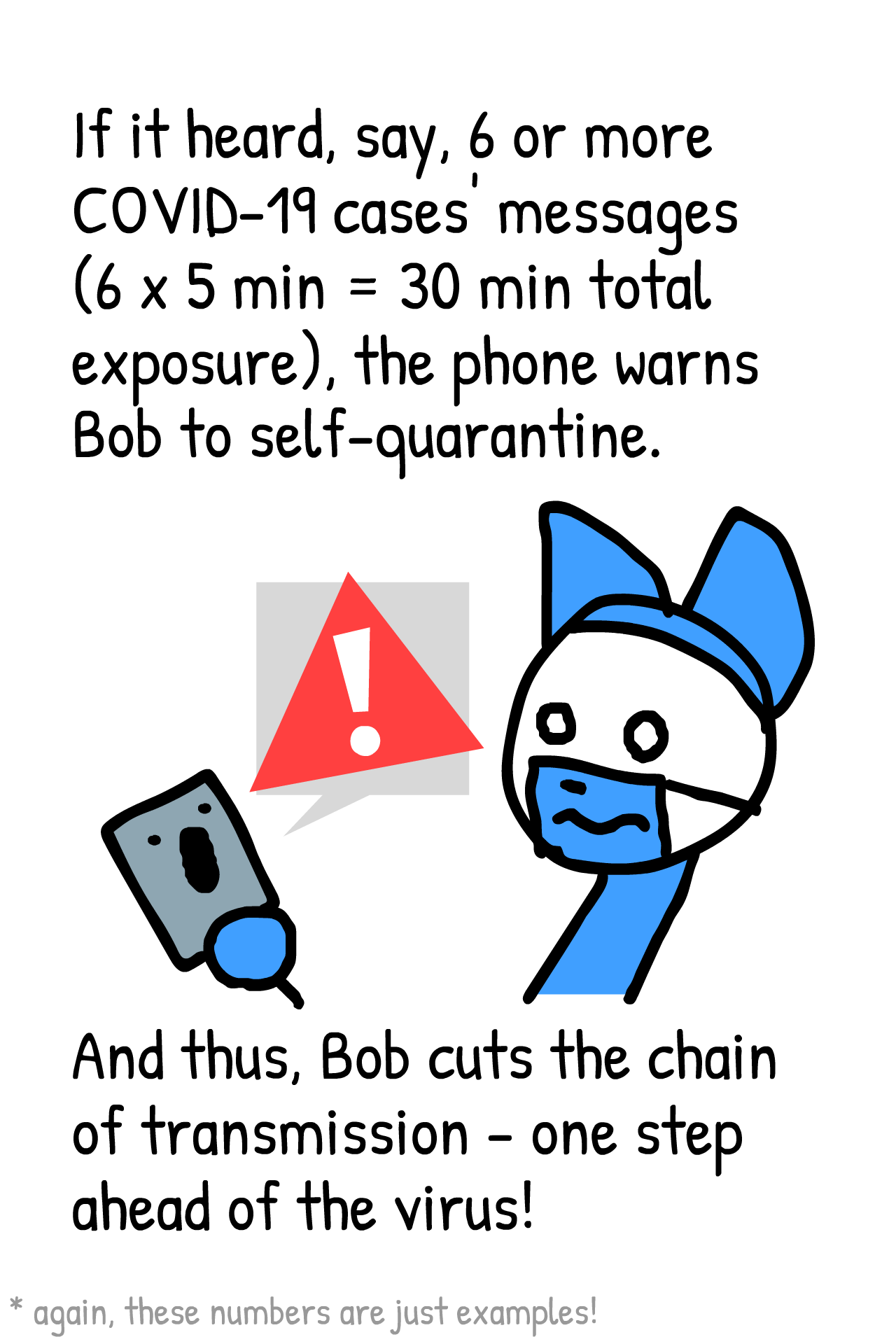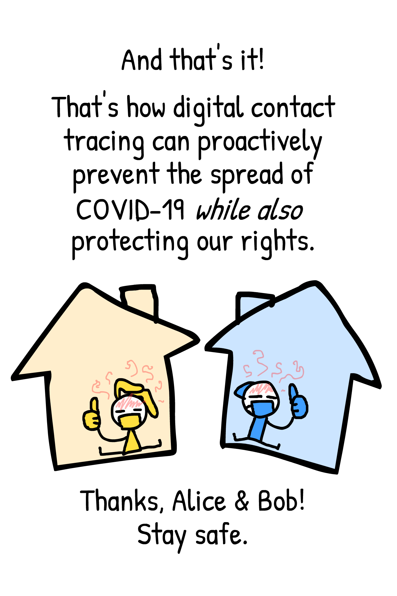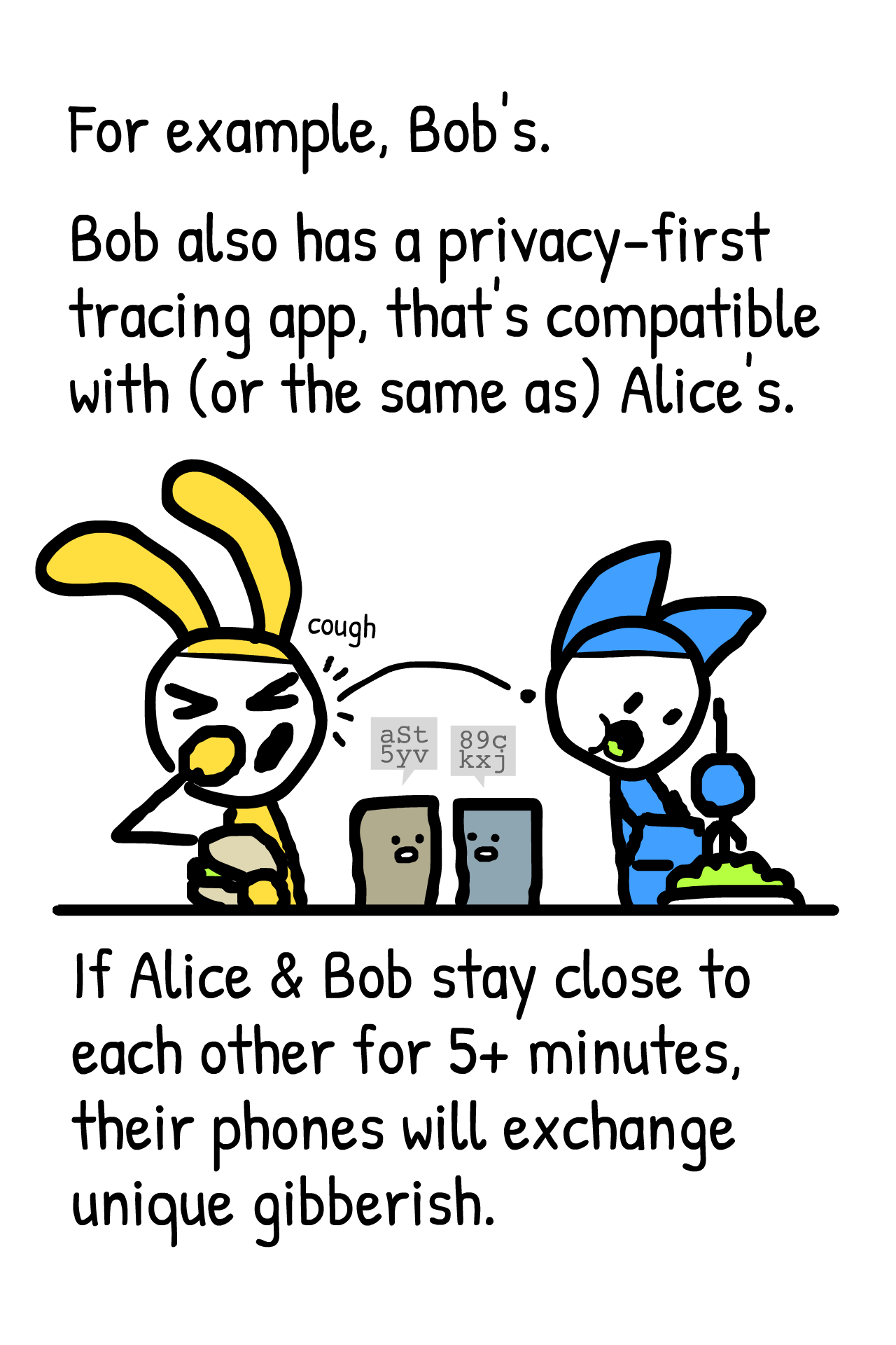 Tegneserien beskriver en konkret idé til en smitteopsporingsapp, men principperne bruges af flere og er i øvrigt ret velkendte fra feltet med kryptering, deling af hemmeligheder, at regne på/med information, man ikke kan se… hvor både matematik og datalogi er helt nødvendige. Det ser ud til, at man her bruger en lidt anden teknik end den, vi tit hører om med primtal og andet i den talteoretiske/algebraiske boldgade.